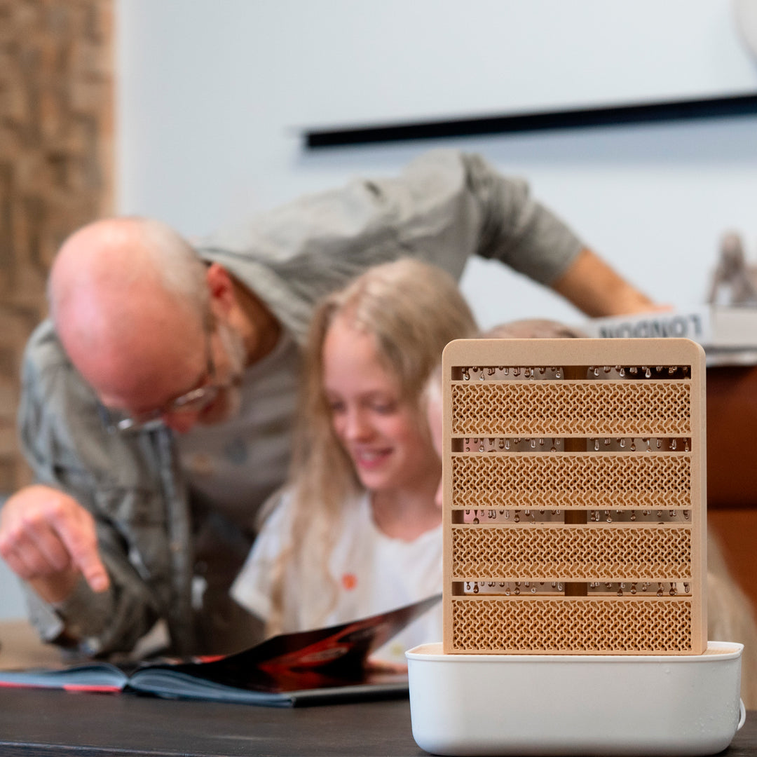 W sercu SalinoVatis znajduje się technologia suchego nasycania powietrza solą. Specjalna trójwymiarowa struktura (Gyroid) pozwala uzyskać efekt podobny do morskiego powietrza — delikatnie, stabilnie i bezpiecznie.